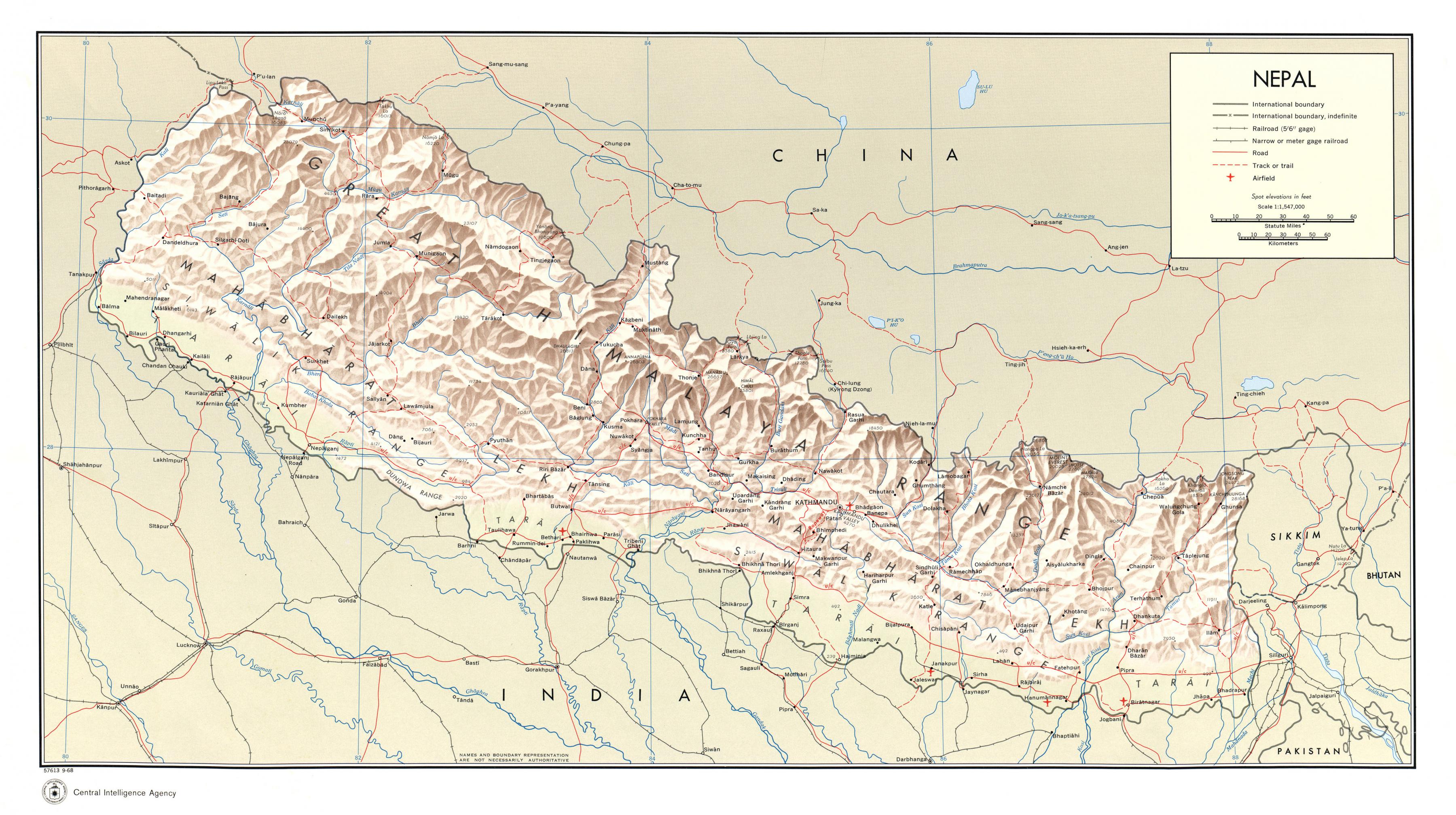 Летища Непал на картата